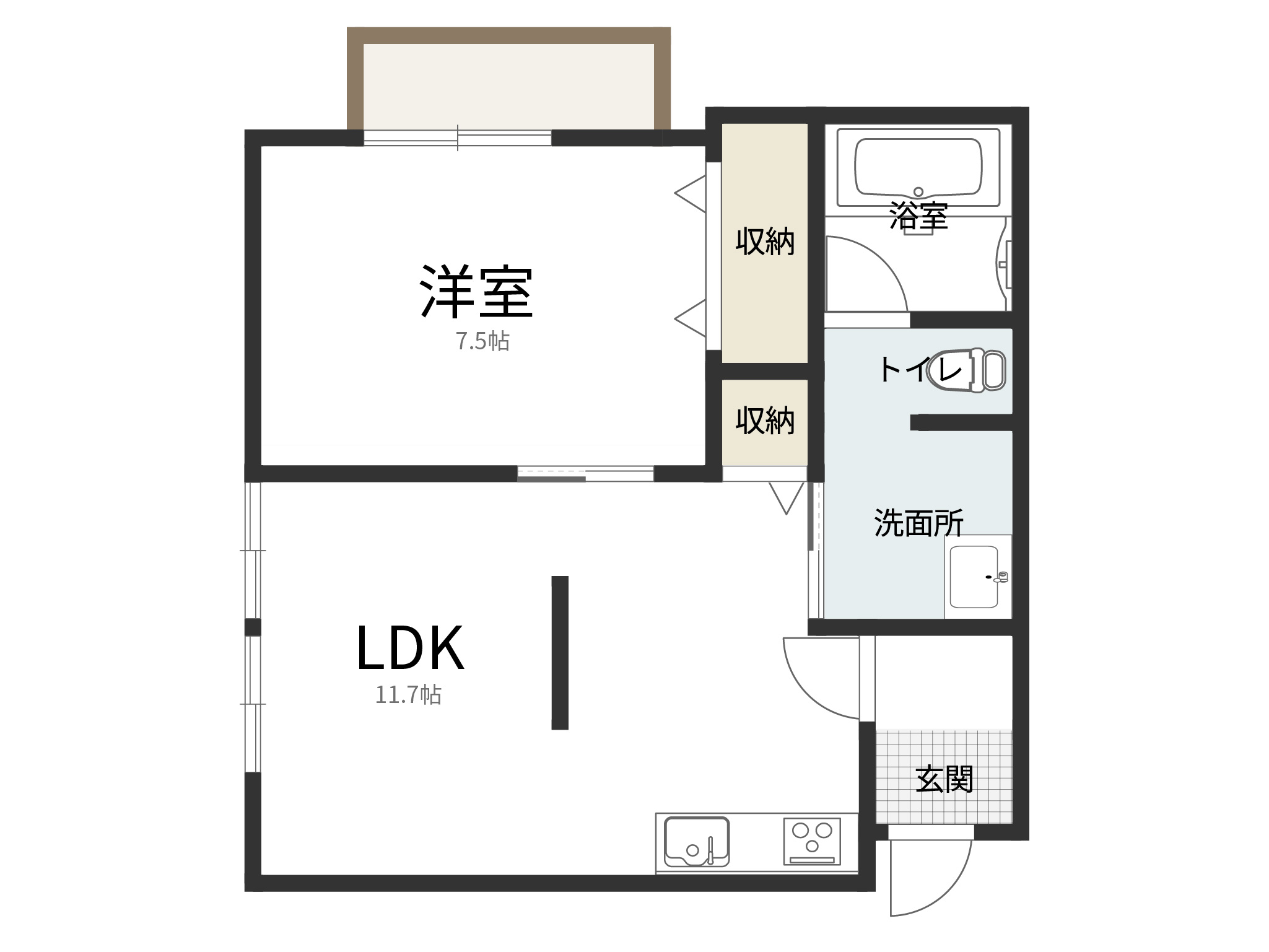 | 構造と築年数 | 木造2階建 共同住宅 全8室 / 令和7年9月築予定 / 1LDK(LDK11.7帖・洋室7.5帖) / 専有面積45.55㎡ |